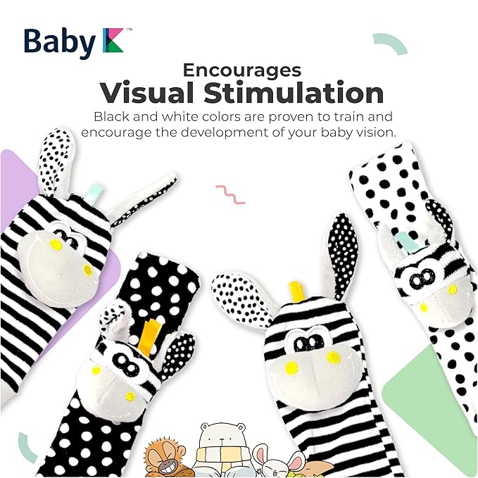 BABY K Foot Finder Socks & Wrist Rattles (Set J) - Newborn Toys for Baby Boy or Girl - Brain Development Infant Toys - Hand and Foot Rattles Suitable for 0-3, 3-6, 6-12 Months Babies