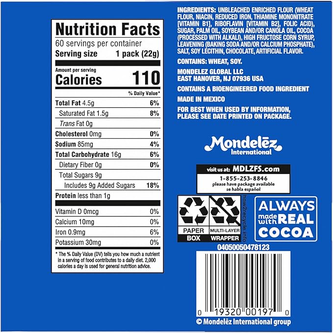 - Chocolate wafers Always Made with Real Cocoa and filled with original OREO creme