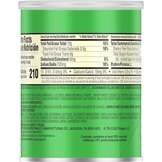 - Pop open a can and experience the bold flavor and satisfying crunch of Sour Cream and Onion Flavored Pringles Potato Crisps