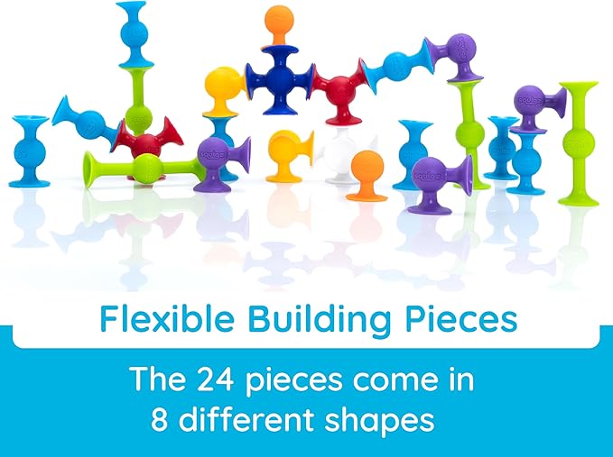 Fat Brain Toys Squigz Starter Set, 24 Piece Suction Bath Toys, Sensory Toys for Kids 3 and Up