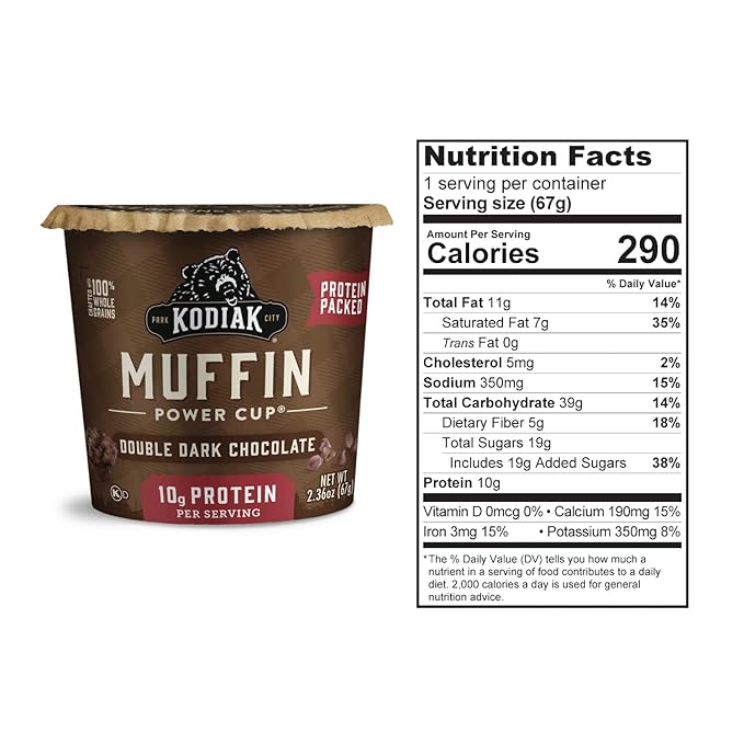 - You will receive a Pack of (12) Kodiak Cakes minute muffins, double Dark Chocolate, 2.36 Ounce
