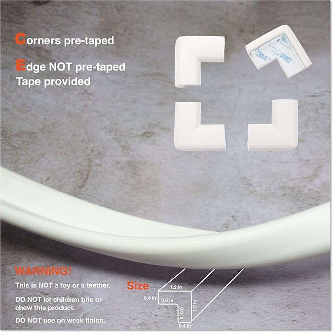 - SECURE ADHESION: Includes authentic easy-to-peel 3M double-sided tape (36 feet of tape for the edge guard, not pre-taped), with 8 corner guards pre-taped. Oyster white goes well with maple, birch, alder, or light-colored furniture, such as beige, white, off-white and gray tables, chairs, chests, shelves, stairs, desks and fireplaces/hearths. All text and photos/images in this product listing are copyrighted materials. Copyright: 2012 Mayapple Baby LLC, Brooklyn NY, USA. Designed in USA.