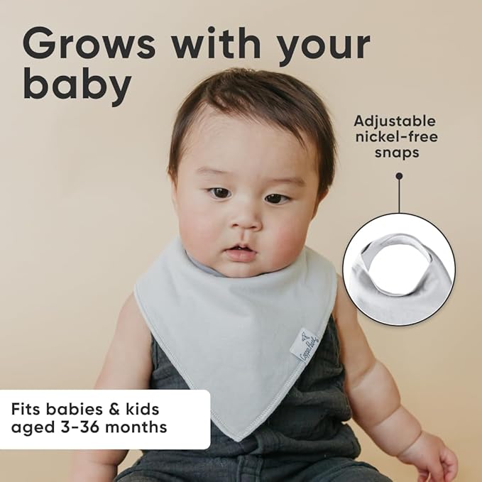 - GROWS WITH YOUR BABY: Each bib features two adjustable nickel-free snaps, allowing for a perfect fit from newborn through toddlerhood (3–36 months).