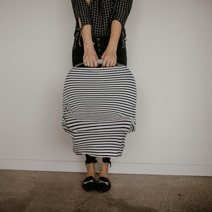 Parker Baby 4 in 1 Car Seat Cover for Girls and Boys - Stretchy Carseat Canopy, Nursing Cover, Grocery Cart Cover, High Chair Cover - Gray/White Stripes