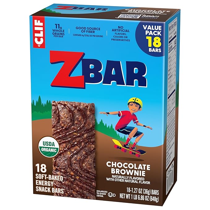 CLIF Kid Zbar - Chocolate Brownie - Soft Baked Whole Grain Snack Bars - USDA Organic - Non-GMO - Plant-Based - 1.27 oz. (18 Pack)