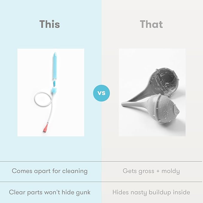 - EASY TO CLEAN & MAINTAIN FOR BUSY PARENTS: The aspirator’s nasal tube, mouthpiece & filter cap are dishwasher safe on the top rack, ensuring a hassle-free clean after each use. The disposable filters guarantee a hygienic experience & block germ transfer