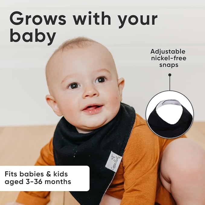 - GROWS WITH YOUR BABY: Each bib features two adjustable nickel-free snaps, allowing for a perfect fit from newborn through toddlerhood (3–36 months).