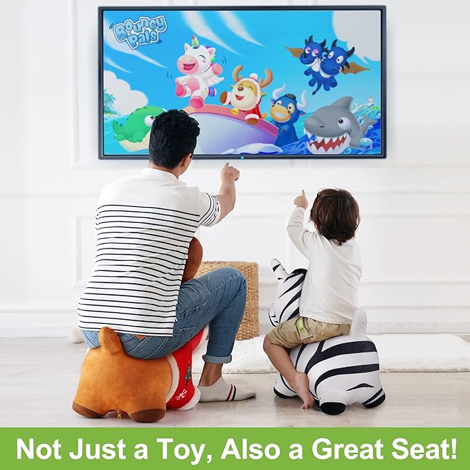 iPlay, iLearn Bouncy Pals Zebra Hopping Horse, Plush Inflatable Animal Hopper, Indoor n Outdoor Ride on Jumping Bounce Toys, Birthday Gift for 18 Months 2 3 4 5 Year Old Kids Toddlers Boys Girls