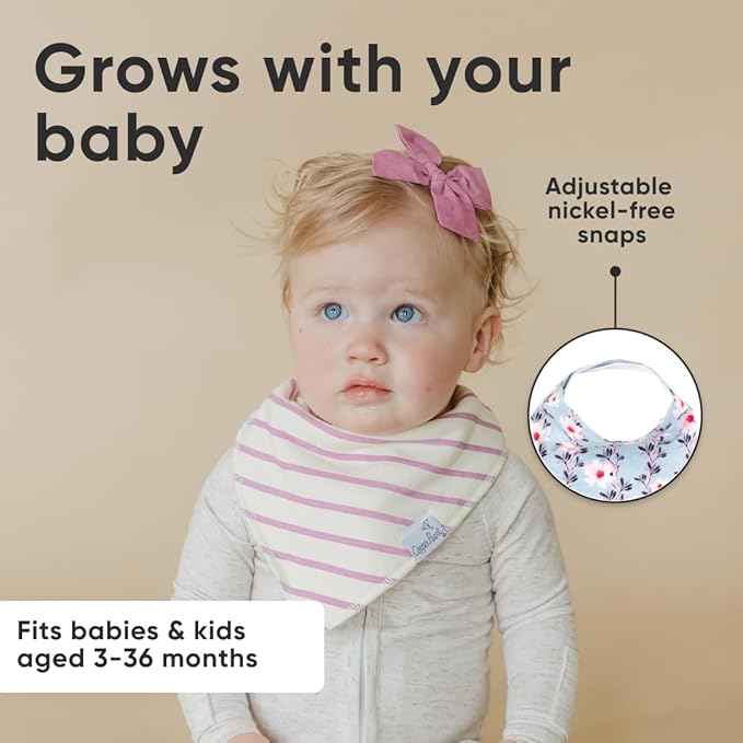 - GROWS WITH YOUR BABY: Each bib features two adjustable nickel-free snaps, allowing for a perfect fit from newborn through toddlerhood (3–36 months).