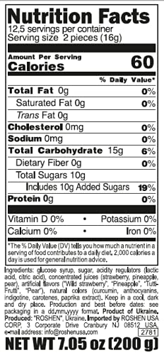 - Pear, pineapple, strawberry, and tutti-frutti flavors are all included in the sweet candy's fruit and berry filling. With the addition of natural fluids, it is moderately sweet and fragrant.