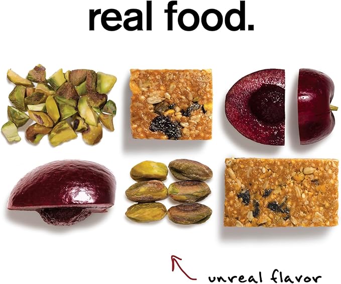 - CHERRY + PISTACHIO: Cherry and nutty pistachios with a touch of sea salt – has there ever been a more perfect combination? These whole food bars are healthy, clean, and provide complex carbs compared to the leading protein bars or granola bars.