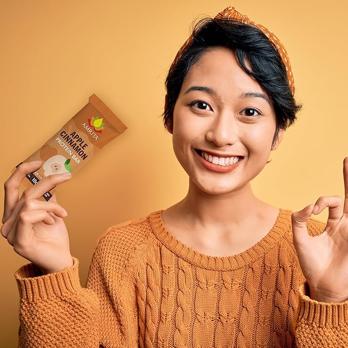 AMRITA Apple Cinnamon Vegan Protein Bars – 15g Plant-Based Protein – Gluten, Soy, Peanut & Dairy-Free – High Fiber, Low Sugar Meal Replacement Bars – Ideal Breakfast, Snack, or Energy Boost