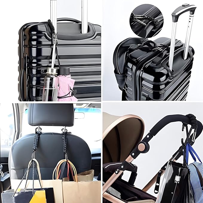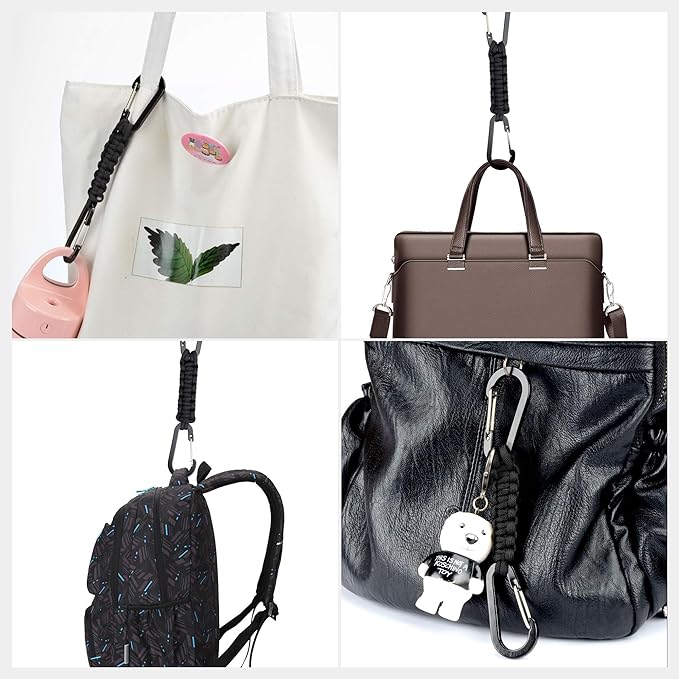 - Multi-functional and Practical: Variety of uses for you in indoor or outdoor. It can be used to hanging your clothes, water bottles, handbag or backpacks, key, car key, shopping bags, flashlight, id card holder, USB driver, umbrella, toiletry bags, key tags, survival hanger, waterproof bag, luggage, keychain organizer, keychain holder, keychain gadget. It is also a useful stroller hook or stroller hanger for baby care belongings.
