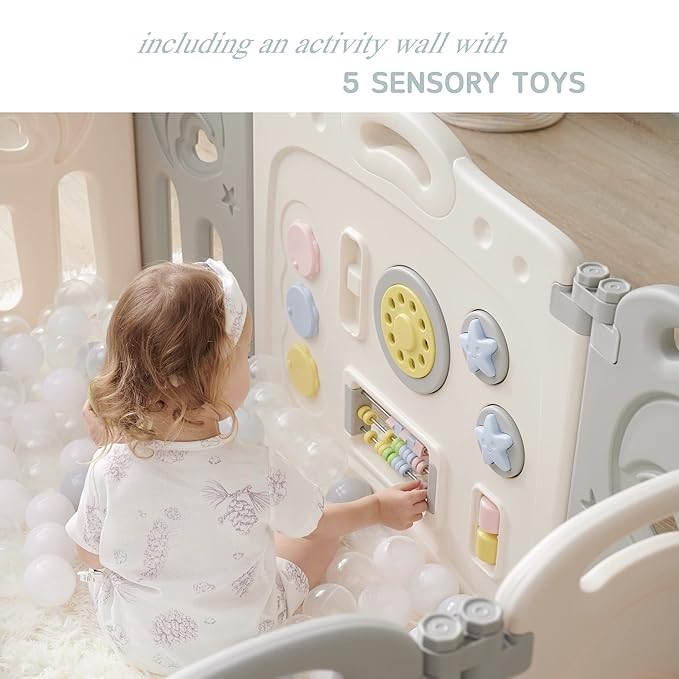 Fortella Cloud Castle Foldable Playpen, Baby Safety Play Yard with Whiteboard and Activity Wall, Indoors or Outdoors (Gray, 14 Panel)