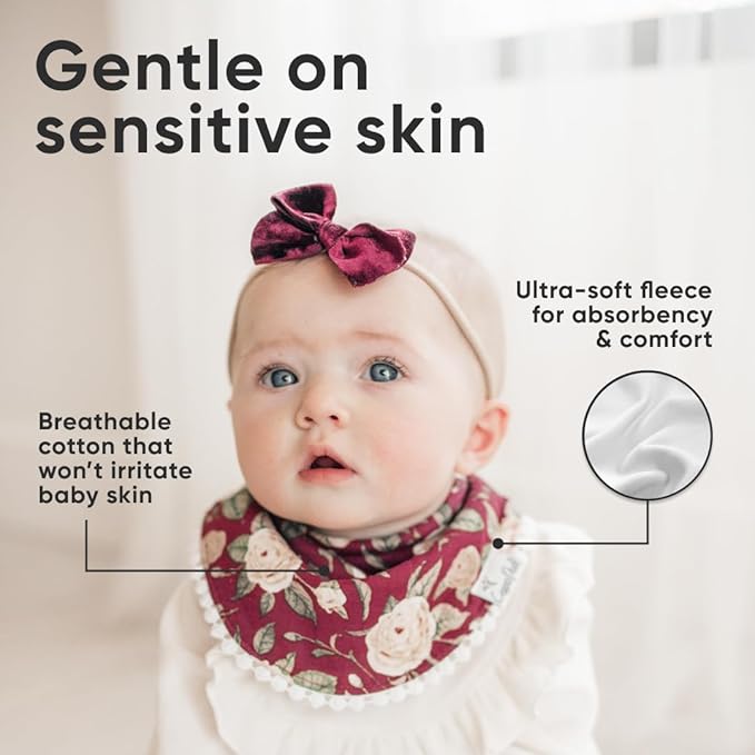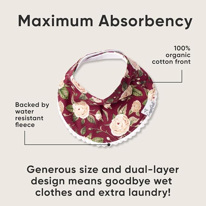 - MAXIMUM ABSORPTION: Fronted by ultra-soft Organic Cotton and lined with water-resistant polyester fleece to provide an extra layer of absorbency. Each bib is crafted with dual-layer protection against heavy drooling or spit-up, keeping your baby dry and comfortable.