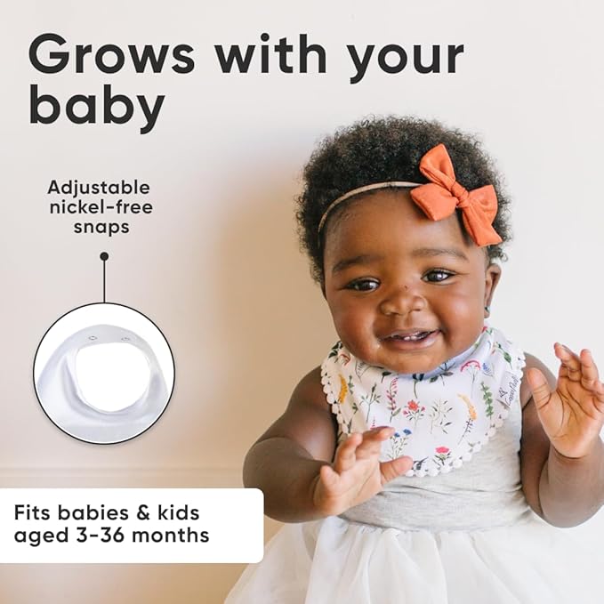 - GROWS WITH YOUR BABY: Each bib features two adjustable nickel-free snaps, allowing for a perfect fit from newborn through toddlerhood (3–36 months).