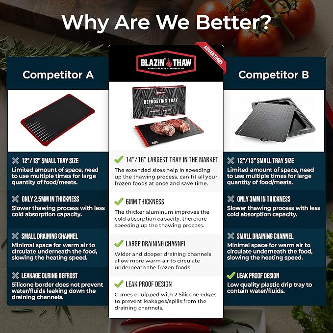 BLAZIN' THAW Defrosting Tray for Frozen Meat | 16" Family-Size | Aluminium Plate for Thawing Frozen Food | Natural Thawing Process | No Microwaves, No Cold/Warm Water Required |