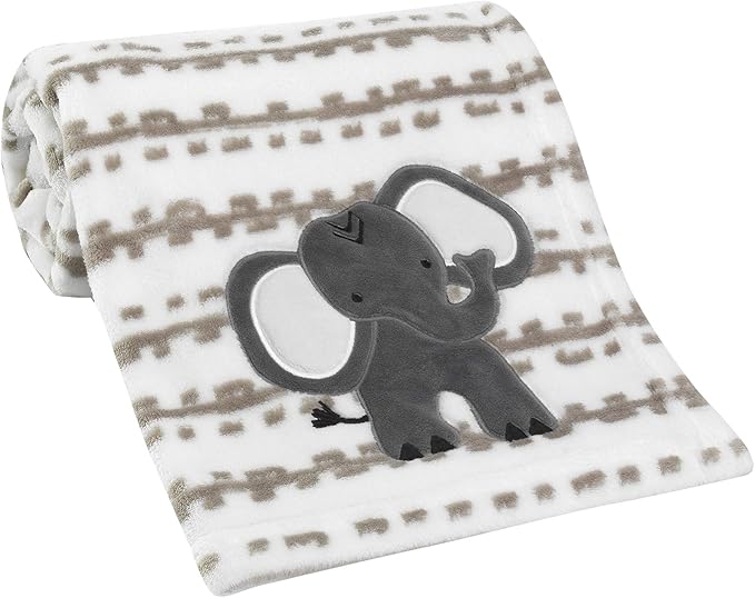Lambs & Ivy Jungle Safari White/Tan Plush Minky Elephant Nursery Baby Blanket