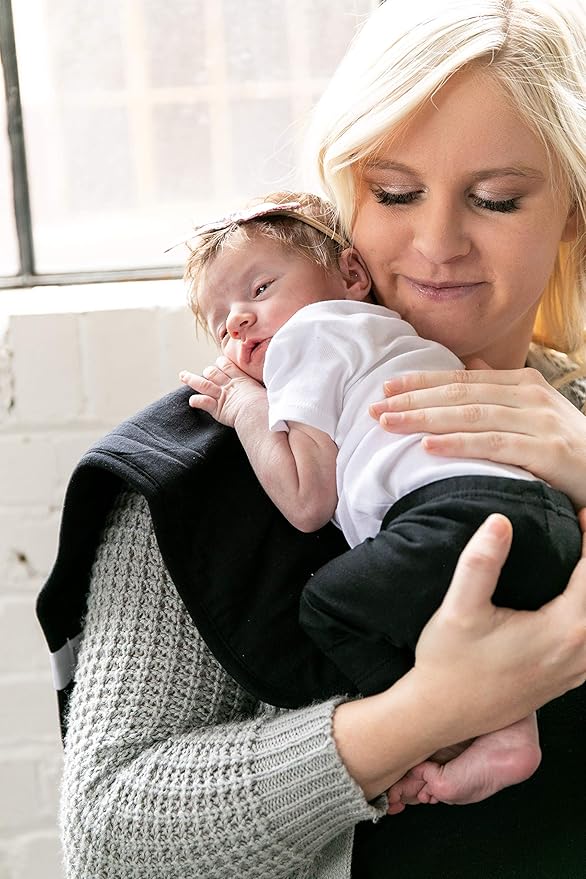 Copper Pearl Premium Baby Burp Cloths - 3-Pack Large Cotton Burp Cloths, Extra Soft Spit Up Rags with 3 Absorbent Layers, Perfect for Baby Boy and Baby Girl Gifts (21" x 10" Size, Black Basics Set)