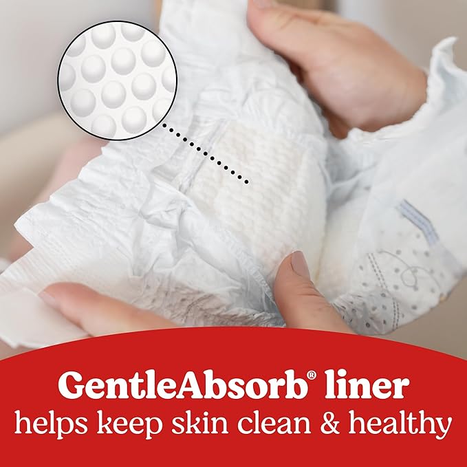 - GentleAbsorb Liner: Each disposable diaper is made with Huggies’ GentleAbsorb Liner*** that absorbs wetness on contact to help keep your baby’s skin clean and healthy (***Available in Little Snugglers sizes Preemie-2)