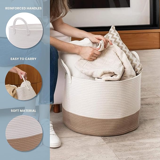 - Beautiful Addition to Your Boho Decor: Elevate your living room decor with this handwoven blanket basket. Neutral tones and minimalist design create a cozy, stylish vibe, perfect for farmhouse, Scandinavian, or boho decor aesthetics.