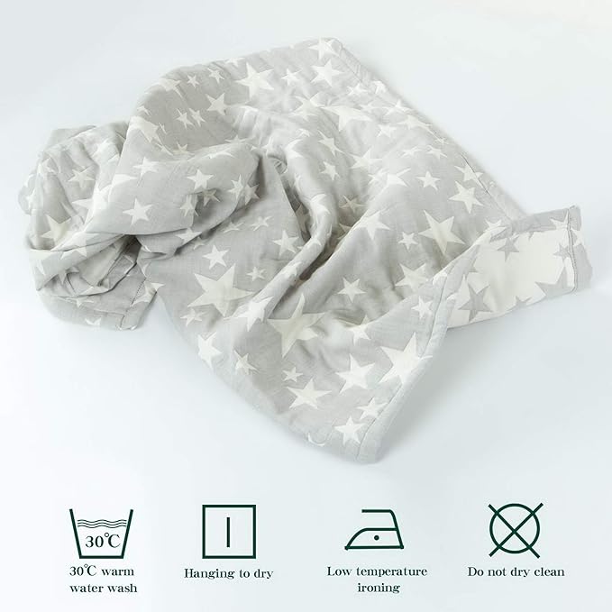 NTBAY 3 Layer Toddler Blanket, Muslin Cotton Jacquard Bed Blankets, Lightweight Thermal Baby Blanket, Super Soft and Warm Crib Blanket for All Seasons, Decoration Gift, 30"x40", Grey Star