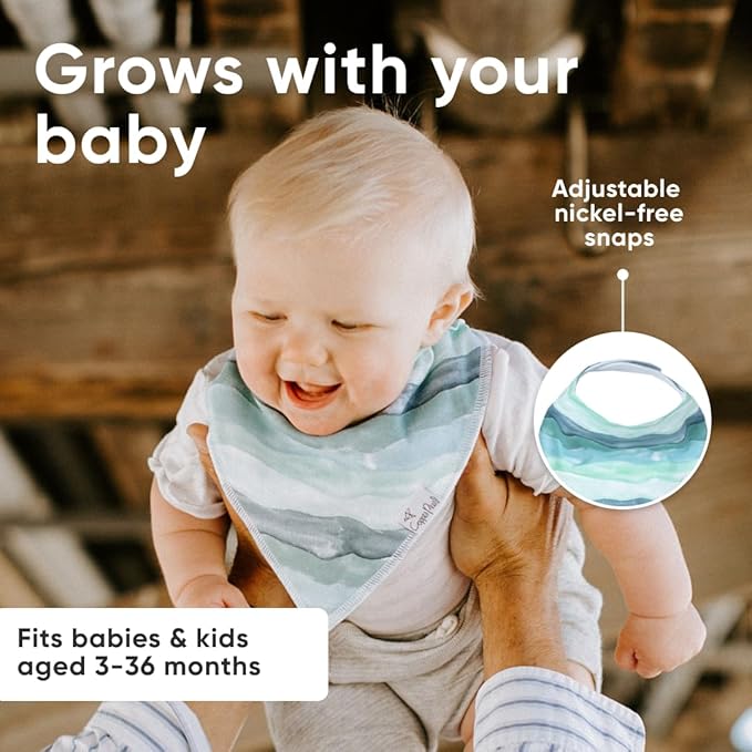 - GROWS WITH YOUR BABY: Each bib features two adjustable nickel-free snaps, allowing for a perfect fit from newborn through toddlerhood (3–36 months).