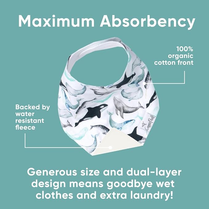 - MAXIMUM ABSORPTION: Fronted by ultra-soft Organic Cotton and lined with water-resistant polyester fleece to provide an extra layer of absorbency. Each bib is crafted with dual-layer protection against heavy drooling or spit-up, keeping your baby dry and comfortable.