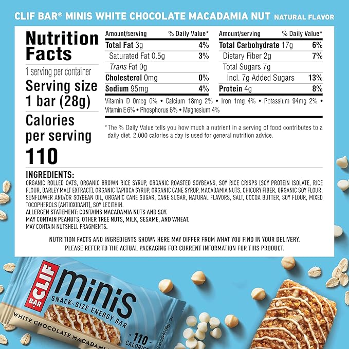 CLIF BAR Minis - White Chocolate Macadamia Nut Flavor - Made with Organic Oats - 4g Protein - Non-GMO - Plant Based - Snack-Size Energy Bars - 0.99 oz. (20 Pack)