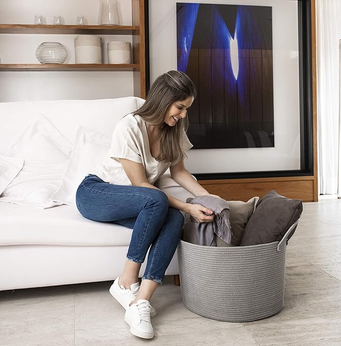 - Soft Yet Durable Cotton Rope: This premium woven laundry basket is crafted from cotton, no chemicals, no plastics. Safe for children and pets, with a soft texture that won’t scratch floors or hands.