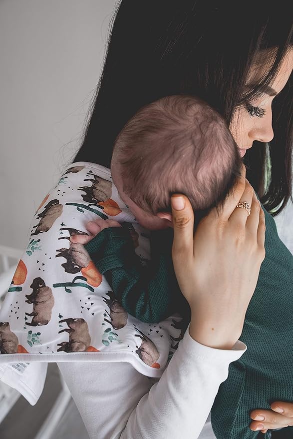 - SOFT AND COZY: Our burp cloths are designed with the baby’s comfort in mind. That’s why we created them with 100% ultra-soft cotton layers on the front (patterned) and back (plain white). You can feel confident that baby will feel cozy against your shoulder while burping.