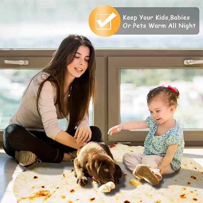 - 【Comfort and Soft Blanket】This burrito blanket for kids, 49 Inches in Diameter, Looks Like a Tortilla. With 280 Grams of Premium Flannel Fabric, Single-layer Design, our Baby tortilla Blanket is perfectly fit for kids, baby and pets