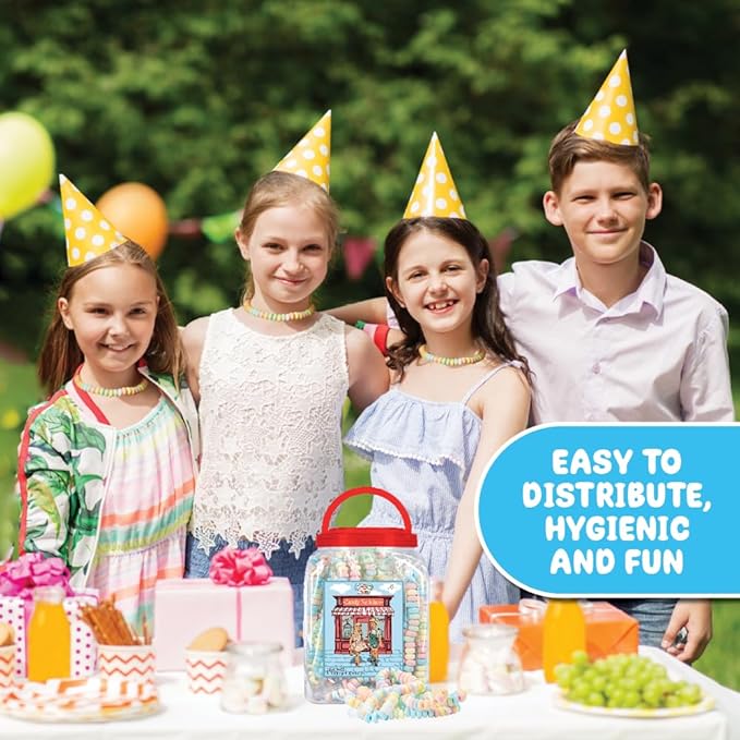 - PERFECT PARTY FAVOR: These candy necklaces are ideal for pastel party favors and Barbie birthday treats. As the candy necklaces are individually wrapped, they’re also great for Halloween treats, piñata fillers or Easter hunt treasures. Or, use our nostalgic candy jewelry to add some novelty to your pastel candy buffet.