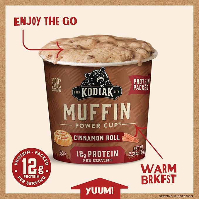 Kodiak Cakes Minute Muffins, Cinnamon Roll, 2.36 Oz (Pack of 12)