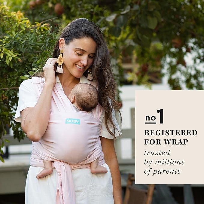 Moby Baby Wrap Carrier Classic for Newborns to Toddlers (8-33lbs), Infant Sling Carrier, Lightweight & Hands Free Design, Adjustable for All Body Types (Rose Quartz)