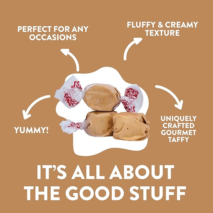 Taffy Town Saltwater Taffy- Maple | Gourmet Taffy| Nougat-Style Candy| Soft & Delicious| Sumer Snack Treats| Party Good Candies| 2.5lbs