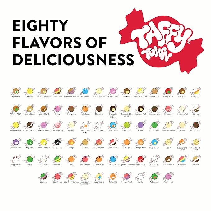 - 80+ TRUE TO LIFE FLAVORS: Whether you like the classics or want to try a new flavor combination, look no further than Taffy Town!