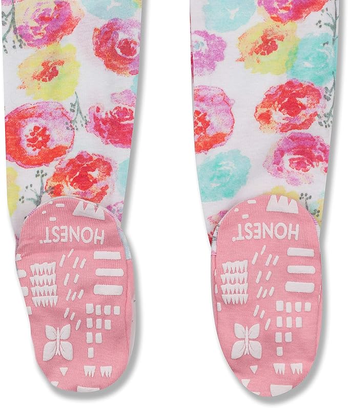 HonestBaby 2-Pack Non-Slip Footed Pajamas One-Piece Sleeper Jumpsuit Zip-Front Pjs 100% Organic Cotton for Baby Girls