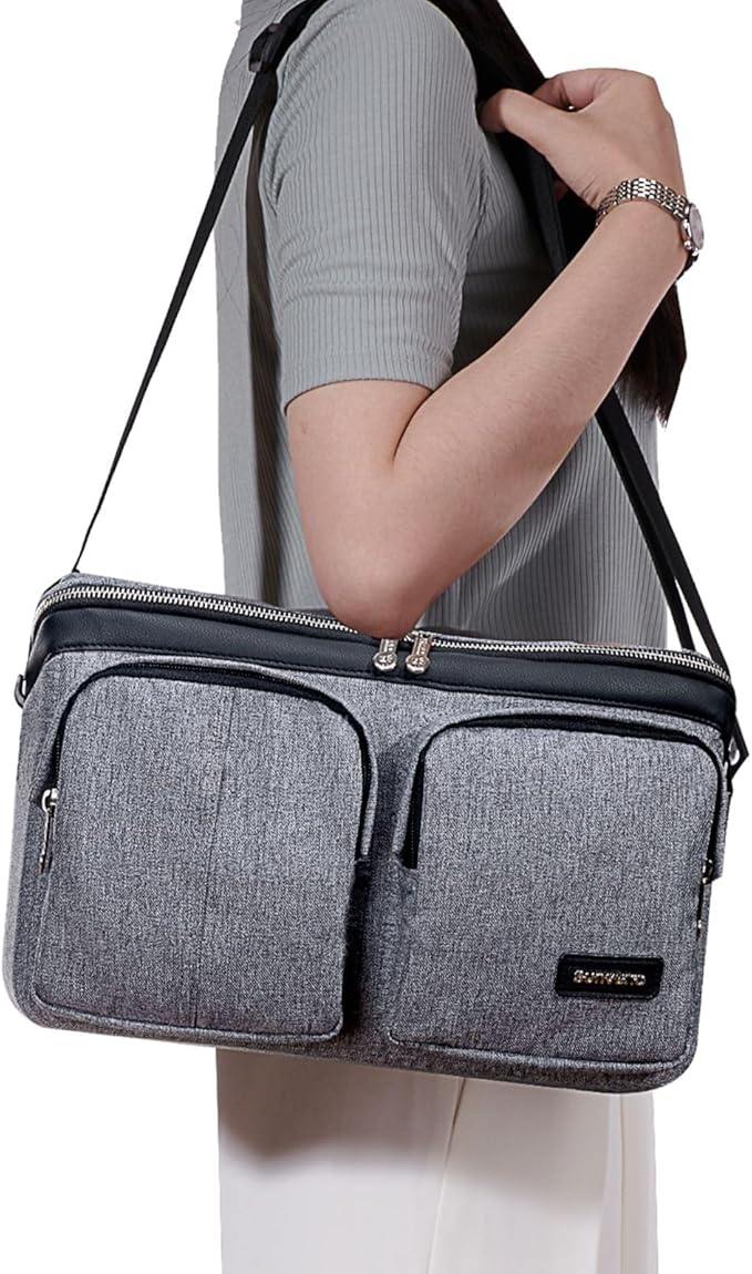 SUNVENO Universal Stroller Organizer Caddy, 2 Cup Holders, Multiple Pockets & Shoulder Strap — Fits Most Strollers