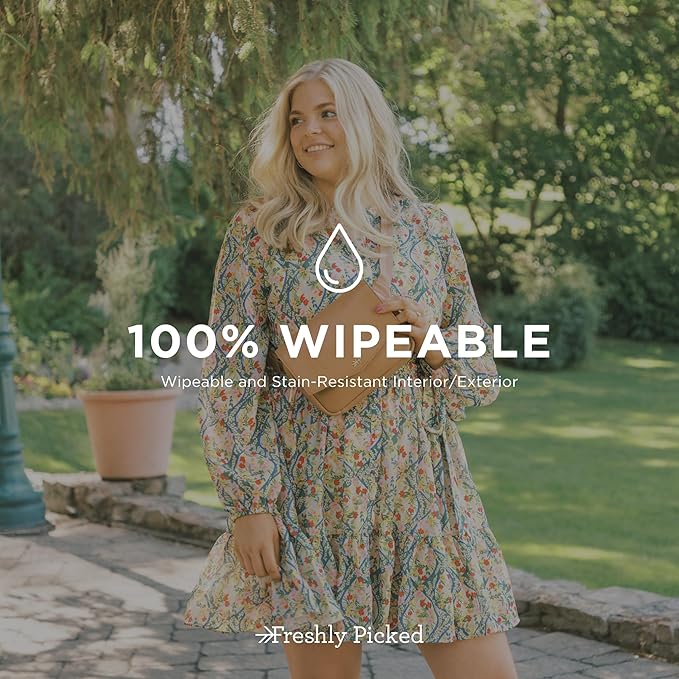 - Premium quality vegan leather, wipeable and stain-resistant nylon interior lining, premium YKK zippers, custom matte gold hardware