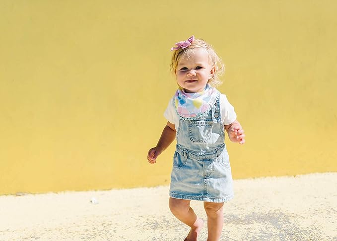 - ADJUSTABLE NICKEL-FREE SNAPS - Each baby bandana bib comes with 2 nickel-free snaps that allow each bib to be adjustable in size to fit newborns and toddlers, with ages ranging from 3-36 months. The snaps are secure, making it difficult for infants and toddlers to unfasten but are easy for parents to snap on and off.