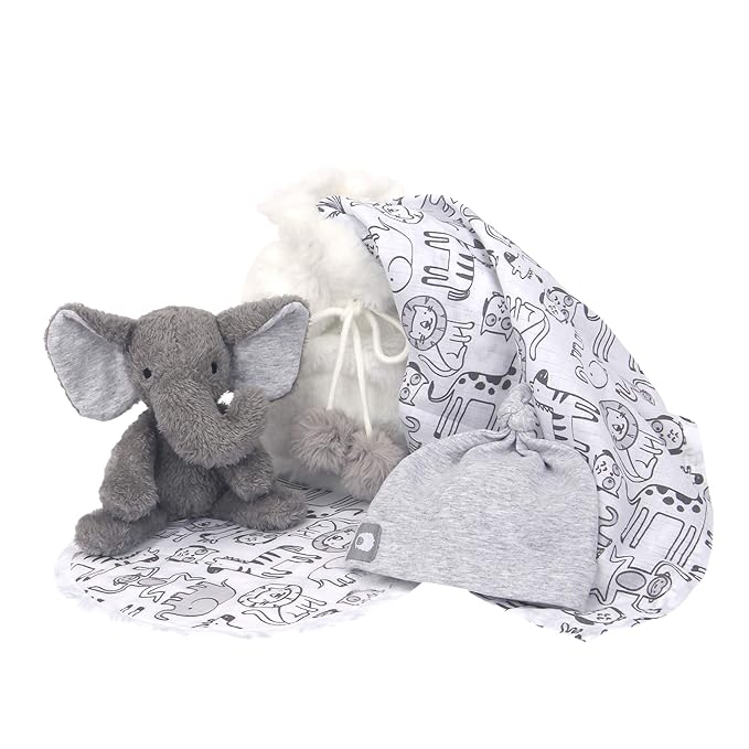 Lambs & Ivy 5 Piece Gray/White Plush Infant/Newborn Baby Gift Bag w/Swaddle