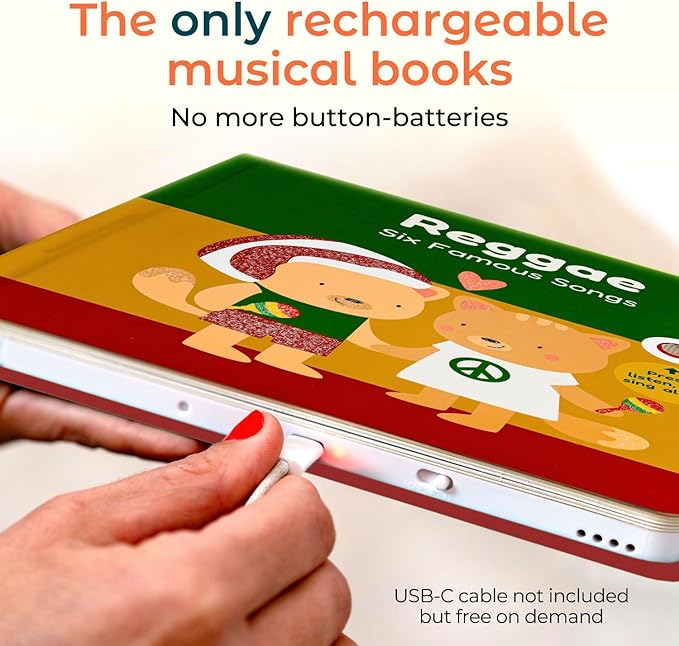 - USB-C Rechargeable: Our toddler books ages 1-3, like this USB-C rechargeable Wheels on the Bus, offer endless fun without the battery hassle. They are perfect musical toys for toddlers 1-3 and great interactive books for 1 year olds!