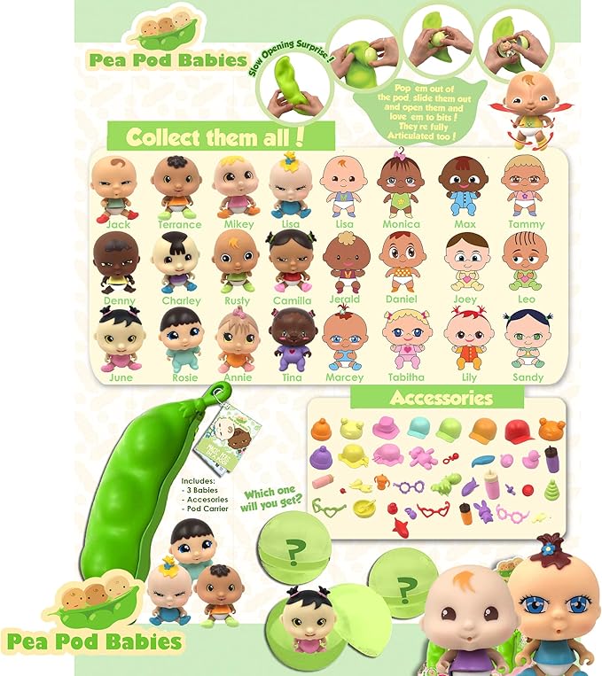 - Pea Pod babies are the latest collectible toy craze. Collect all 24 mini toys! This bundle is great for collecting or for multiple kids. Excellent holiday or birthday gift.