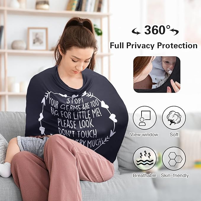 Car Seat Covers for Babies, Nursing Breastfeeding Cover Infant Carseat Canopy, Soft Stretchy Carrier Cover for Stroller High Chair Shopping Cart, Newborn Boy Girl Shower Gift - Stop No Touching Sign