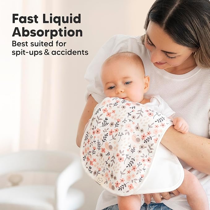Organic Burp Cloths Baby Boy & Girl - 5-Pack Super Absorbent Cotton Burping Cloths for Babies, Soft & Plush Newborn Spit Up Rags, Infant Towels for Milk Spit Up, Unisex, Large 21" x 10" (Sweet Charm)