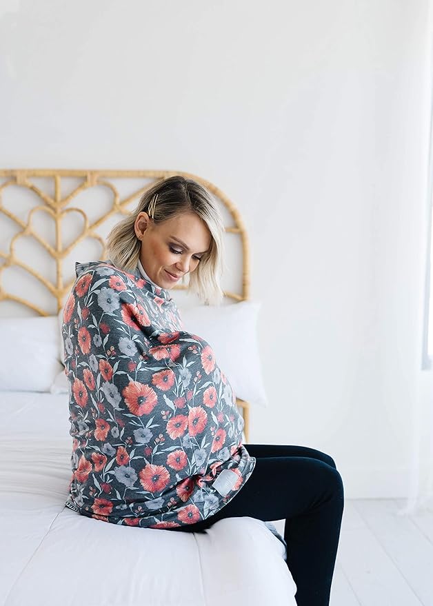 Baby Car Seat Cover Canopy and Nursing Cover Multi-Use Stretchy 5 in 1 Gift Poppy by Copper Pearl