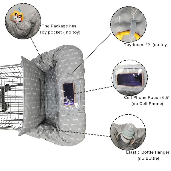 ICOPUCA Shopping Cart Cover for Baby boy Girl, Anti Slip Design, Cotton High Chair Cover, Machine Washable for Infant, Toddler, Grocery Cover (Grey)