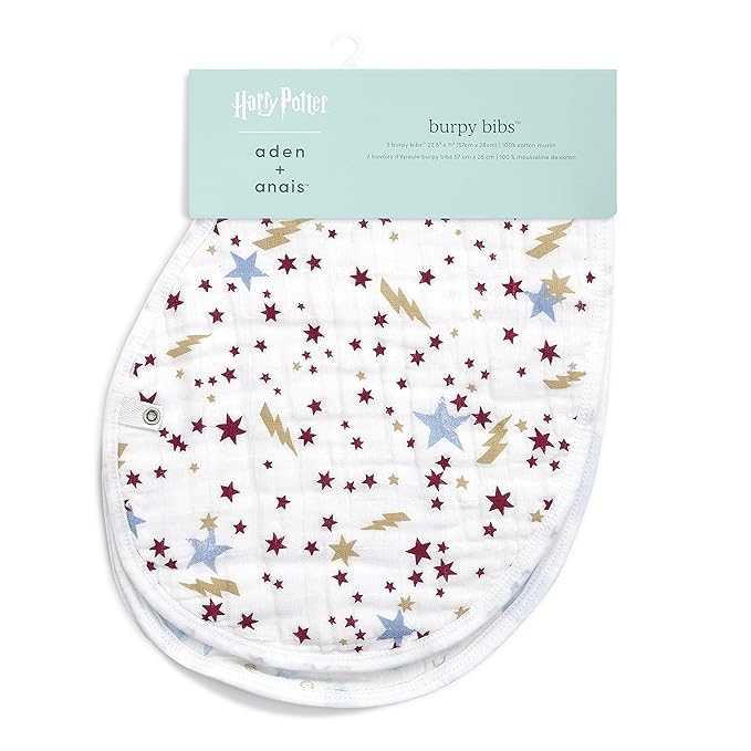 aden + anais 100% Cotton Muslin Burpy Bib – Multi-Use, Absorbent 4-Layer Burp Cloth and Full-Coverage Snap-Closure Baby Bib in One, Lap-Shoulder Drool Cloth, 22.5” X 11”, 2-Pack, Harry Potter