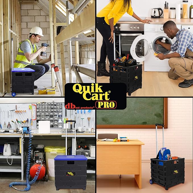 dbest products Quik Cart Pro Wheeled Rolling Crate Teacher Utility with seat Heavy Duty Collapsible Basket with Handle, Blue